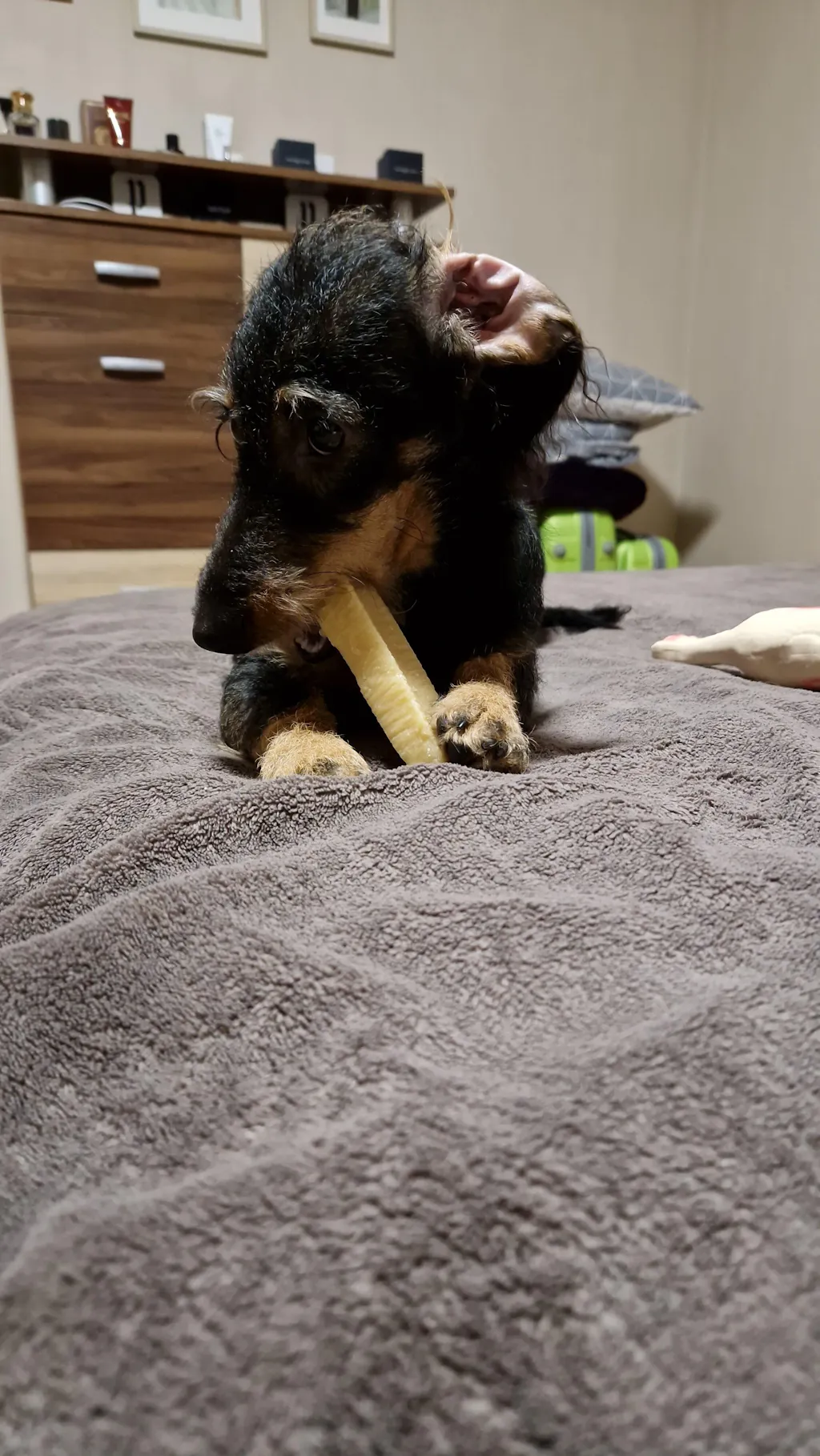 7 hónapos kutyánk imád rágni, a játékai alig maradnak meg és emiatt sokszor nem tudja magát lefárasztani este, ami miatt sokszor fent van. A fogtisztítókkal is végez pár perc alatt, de a Churpit órákig tudja rágni. Szokásunkká vált lefekvés előtt, amikor mi már csak pihenünk a kanapén, fél órára oda adni neki és ez annyira lefárasztja, hogy átaludja az éjszakát. Már 5 napja használjuk és még mindig van belőle. Kár, hogy nem találtam rá előbb!
